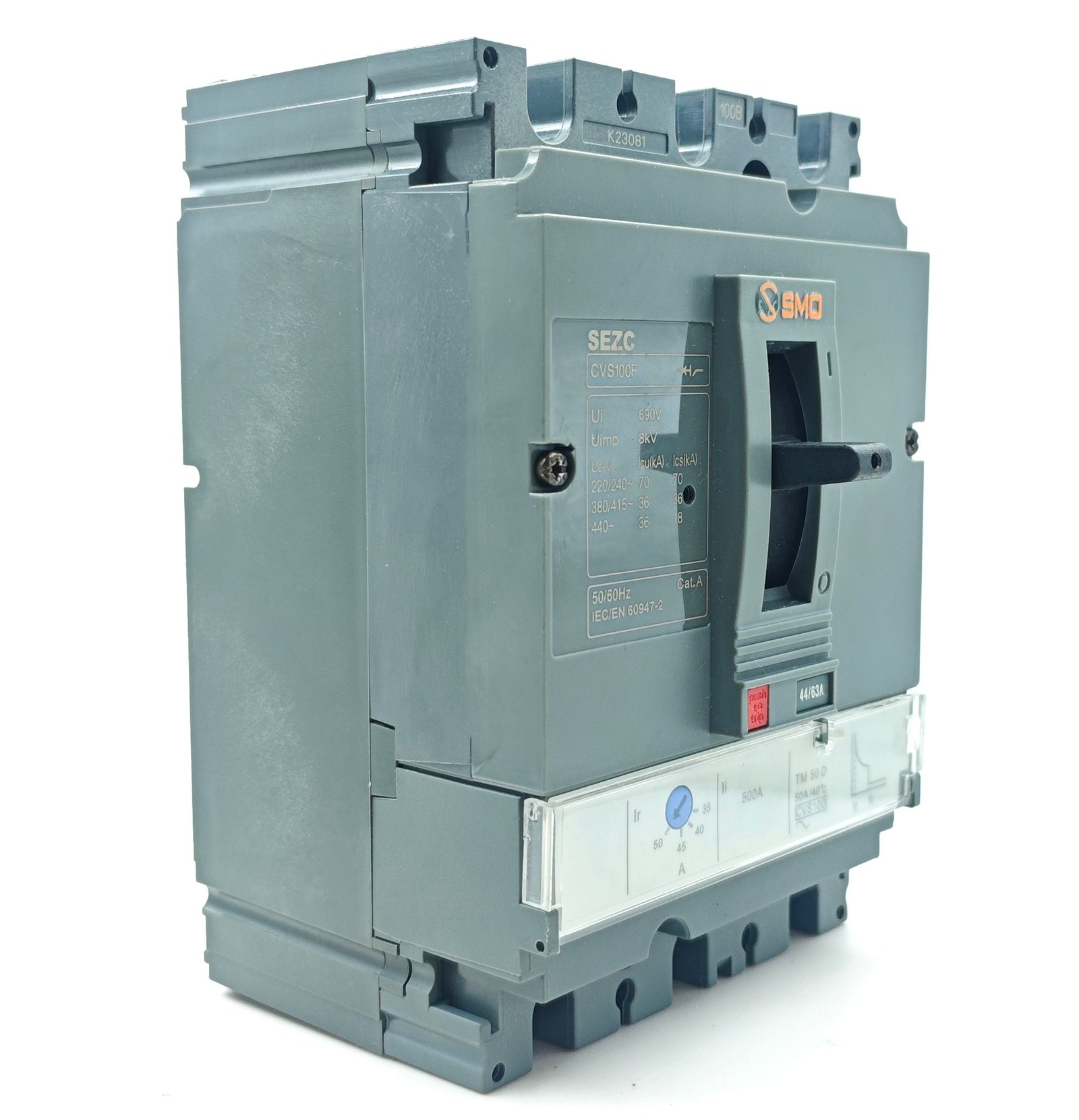 This CVS Series, 3P, 100A molded case circuit breaker is a professional low-voltage power distribution protection device with a rated current of 100A and 3P, widely used in industrial, construction and power distribution systems. It features a mature and stable design, strong versatility, high breaking capacity, and compact structure for easy installation and maintenance. Its core function is to quickly disconnect the circuit in case of overload or short circuit, effectively protecting lines, equipment and personal safety, and ensuring stable and safe operation of the entire power distribution system.