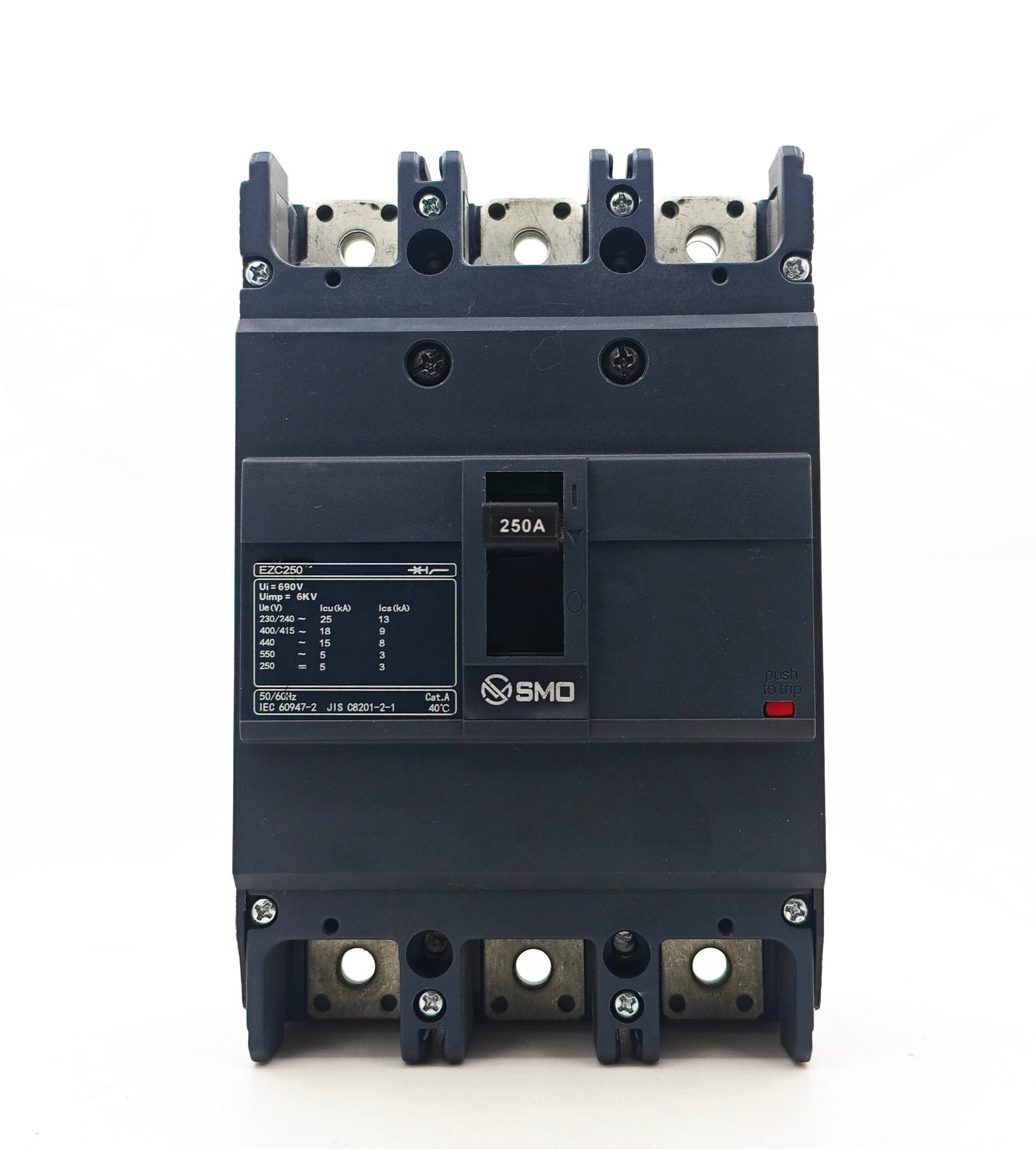 This EZC Series, 3P, 250A molded case circuit breaker is a professional low-voltage power distribution protection device with a rated current of 250A and 3P, widely used in industrial, construction and power distribution systems. It features a mature and stable design, strong versatility, high breaking capacity, and compact structure for easy installation and maintenance. Its core function is to quickly disconnect the circuit in case of overload or short circuit, effectively protecting lines, equipment and personal safety, and ensuring stable and safe operation of the entire power distribution system.