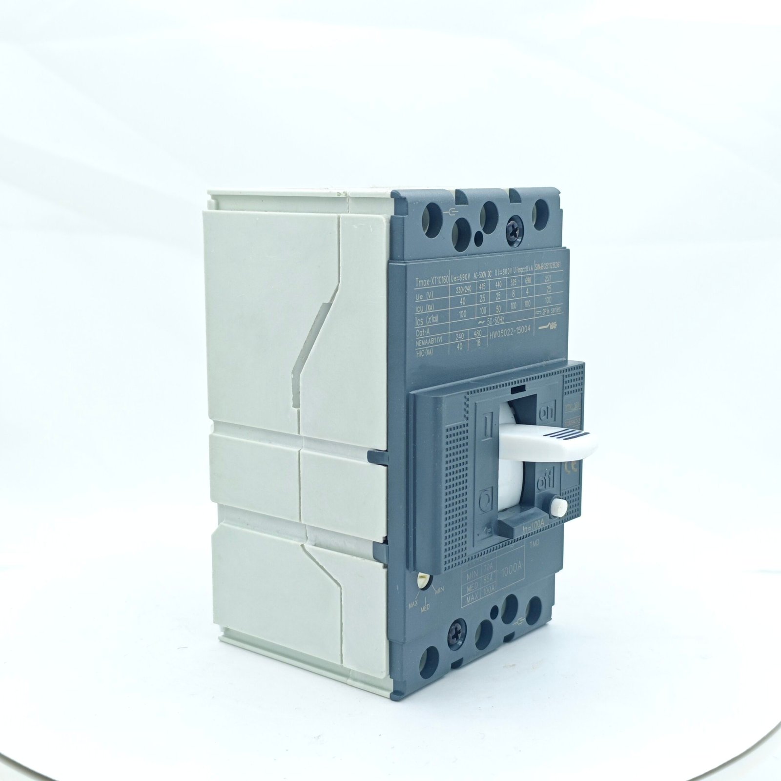 This TMAX T series Tmax XT1 3P 160A molded case circuit breaker is a professional low-voltage power distribution protection device with a rated current of 160A and 3P, widely used in industrial, construction and power distribution systems. It features a mature and stable design, strong versatility, high breaking capacity, and compact structure for easy installation and maintenance. Its core function is to quickly disconnect the circuit in case of overload or short circuit, effectively protecting lines, equipment and personal safety, and ensuring stable and safe operation of the entire power distribution system.